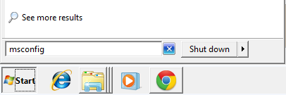 - Buka jendela System Configuration Utility dengan cara klik Start, pada kota Search programs and files ketik: msconfig