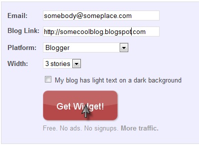 1. Kunjungi LinkWithin.com , lalu isi form yang tersedia di website LinkWithin, isi form Email dengan email anda, dan form Blog Link dengan URL blog anda. Pada opsi Platform, pilih Blogger. Pada opsi Width, tentukan jumlah thumbnail