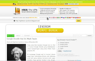 | Tampilan blog saya yang dibuka melalui hidemyass.com |