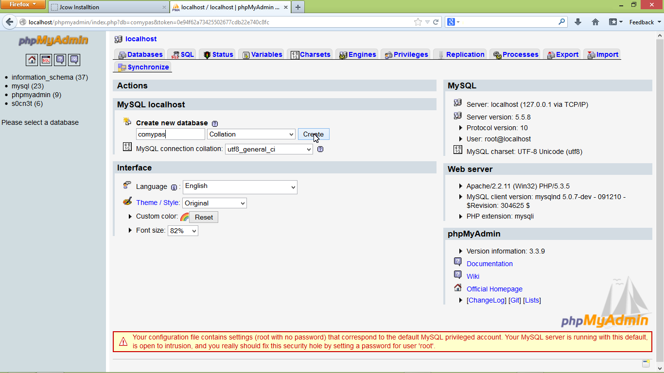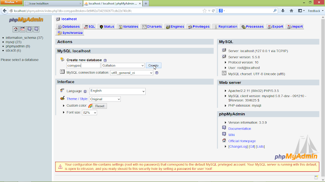 http://localhost/phpmyadmin pada address bar. Lalu isikan nama database